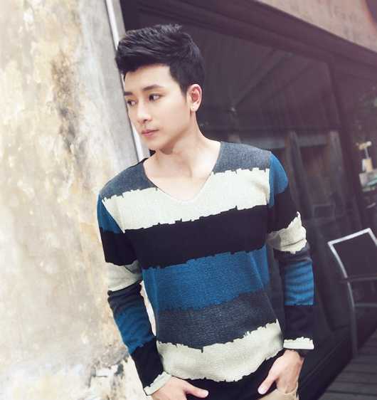 整个人显得很清神,露出清秀的脸蛋,型男一个。