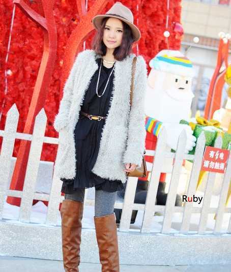 中分的刘海很好修饰了MM的脸型,两颊带点蓬松感的头发有点轻熟女的感觉,头上戴着一顶英格伦风格的帽子,尽显知性美,超棒的哦!大爱哦!