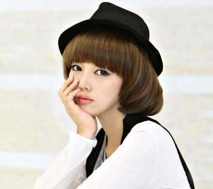 2013最时尚流行的齐刘海BOBO头短发,前面的齐刘海,凸显出甜美感,两颊蓬松内扣发尾,修脸最佳,甜美又清纯哦!戴上帽子,增添了时尚感。
