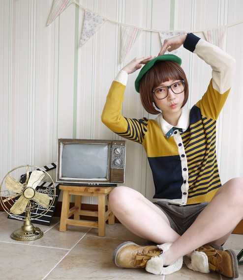 弧形刘海,内弧感的波波头,很可爱哦,还增添了几分乖巧和青春气息,搭上眼镜和帽子,卖卖萌,很萌的一款萝莉短发。