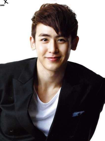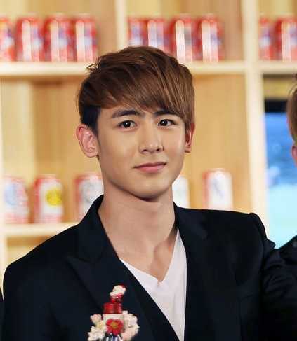 2PM成员尼坤,帅气时尚,韩系风格的发型搭配着精致的脸蛋,超帅气,刘海稍微斜梳,不需要烫发,只要稍微的梳一下就可以了。