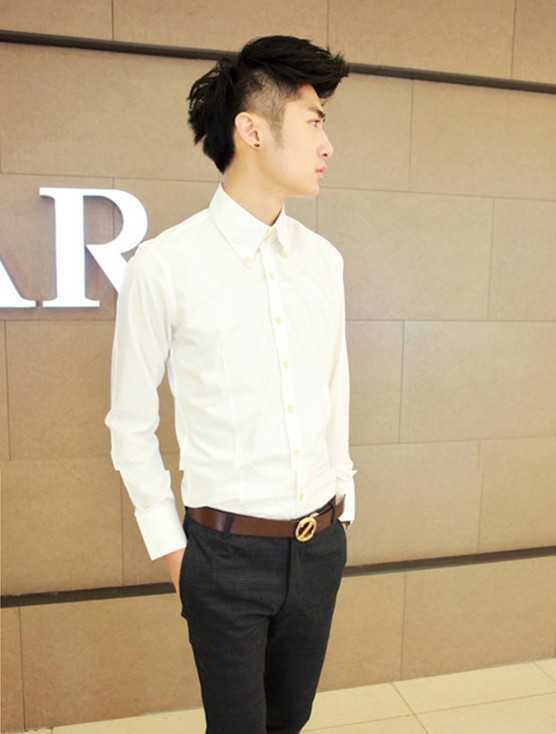 个性时尚的阴阳头,刘海、头顶和后面发丝的蓬松感为整个发型增添了几分层次感,看起来显得更英俊,有几分英伦气息。