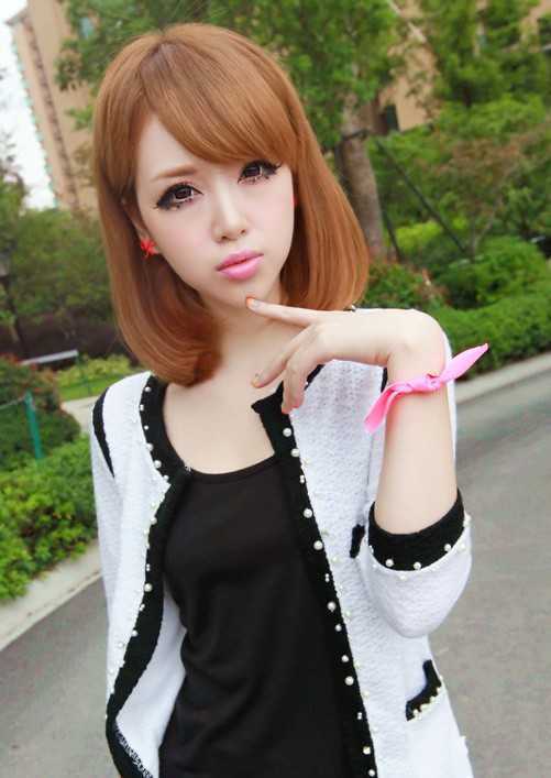 卖萌可爱,一萌妹子一个,搭配亚麻黄色头发,尽显时尚气息,而且还非常显可爱哦,减龄效果超捧的一款,在2013也极受欢迎哦!