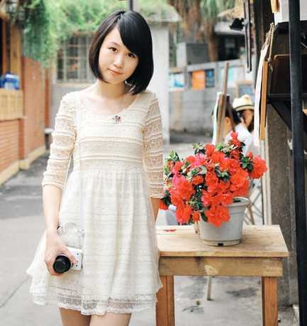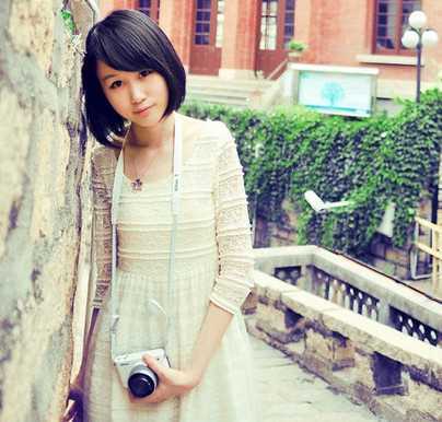 清纯时尚的斜刘海短发,一头自然黑发色,增添了时尚气息,内扣感的发尾,对修脸有很大帮助,减龄效果超棒!