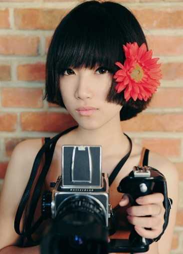 很有日系风哦!一朵大大的娇艳的花饰,衬托楚楚动人的双眸,很甜美可爱哦!