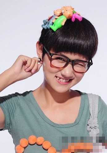 乌黑自然的发丝,锅盖头的发型设计,很有假小子的味道哦!纯纯的学生装扮,
