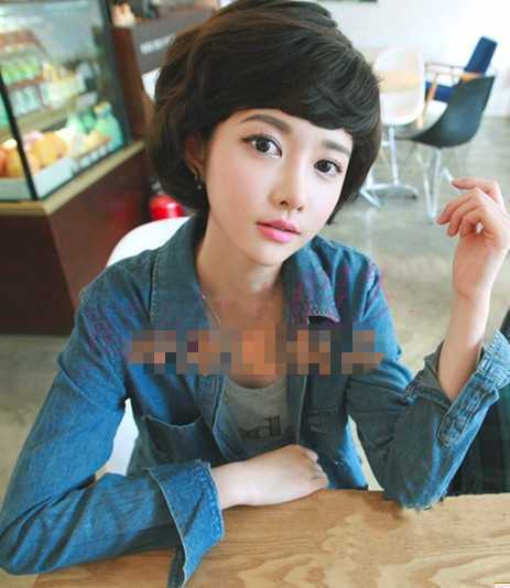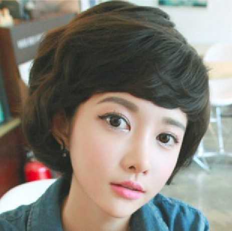 乌黑秀发中带点棕色,微弯的齐刘海,遮了光洁的额头,蓬松感十足的蘑菇头发型设计,带着纹理烫设计,很甜美哦!