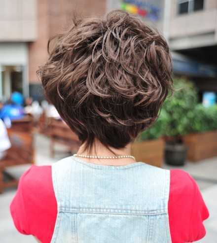 脑后的发梢层次分明的卷翘,很好看哦!时尚又潮流!
