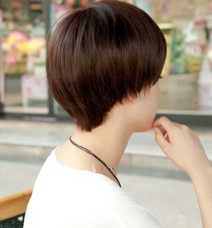 柔顺的直短发发型,板栗色的柔亮发色,细碎的微斜刘海,这样的一款锅盖头短发发型,森女们的最爱哦!既优雅时尚又不是清纯甜美!