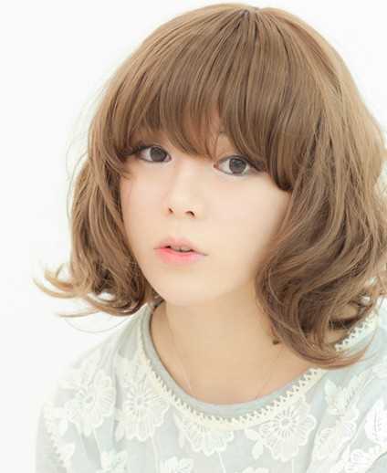 一头浅亚麻色的发丝,不仅能衬托出白皙肌肤,两颊内卷扣的发尾修饰了脸型,瘦脸有术!顶着这款发型瞬间就能变身小萝莉。