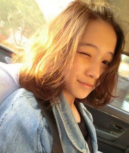 阳光的照耀下,棕黄色的短发显得特别温和,温柔的气息全部被可爱的卷发吸引出来,搭配时尚的牛仔外套很有校园范。