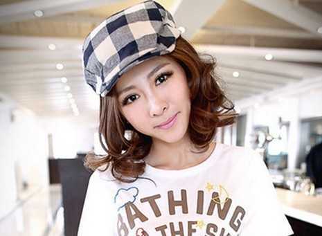 最具人气的蛋卷短发莫过于这一款啦,大弧度棕黄色卷发,呈现出精灵优雅气息,搭配时尚感的帽子既不高调夸张还有更显时髦洋气!