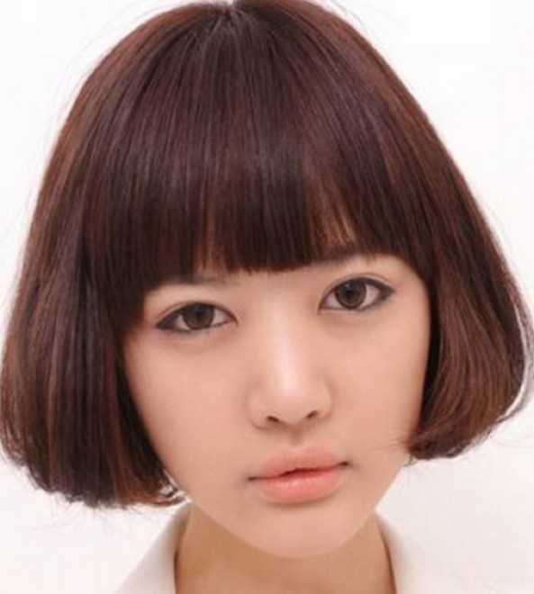 此款甜美的蘑菇头短发洋溢出古典的韵味,立体感得发尾显得十分活跃起来,看起来时尚又大方,深棕色染发搭配齐刘海减龄效果也非常明显哦,不用选择啦,2013最新的蘑菇头发型非它莫属了。