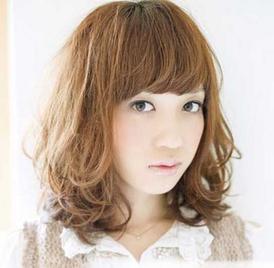 厚重微微外卷的齐刘海带动俏丽可人气息,加上不规则蓬松层次感的发尾烫发,在款秋季的中短发中却体现出最清新自然的效果,更是让轻盈亮丽度倍增了。