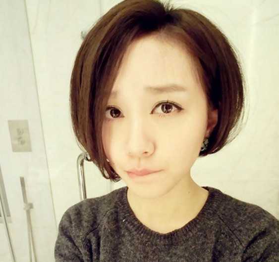 显得有些不对称的中短发,蓬松立体的造型露出光洁的小脸蛋,让整体看起更清爽秀气,而挂在耳朵上的一侧头发有点点小女人气息,秋季里显得十分时尚流行的。