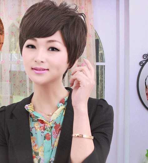 一款超短的女生发型,更多展现给大家的是一个干练知性美的小女人,顶部蓬松的发丝制造明显的立体感,微斜的刘海更是将女生的小脸尽显其中,小西装的时尚搭配,2013秋季里十分优雅感!