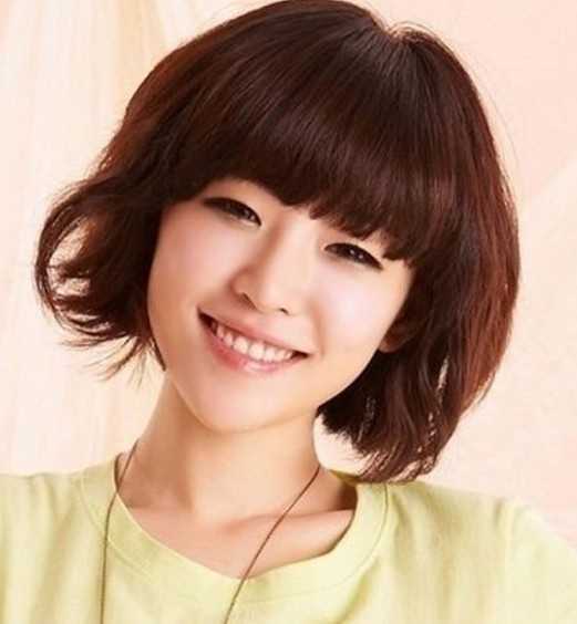 超纯真可爱的女生齐刘海短发,自然烫起的头发发使发型中增加了蓬松饱满度,还能成功修颜的效果,深棕色系染发倍感清新温暖,很适合秋季里哦!
