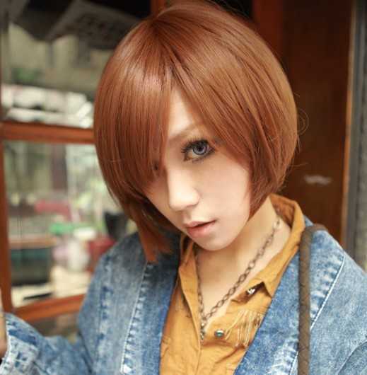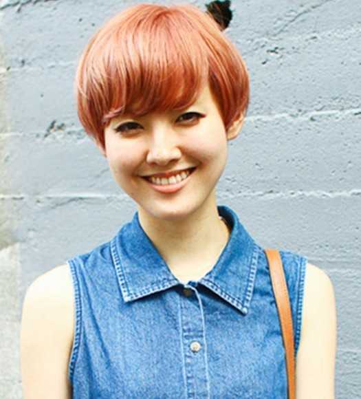 时尚亮丽的浅橘红染发,为这款女生蘑菇头发型带出最火热帅气的一面,偏分弧形的刘海正好为丝毫的甜美度作了很好的铺垫,随性的一个笑容,却是潇洒大方感。