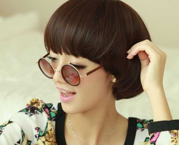 时尚有范的女生蘑菇头发型,柔顺发质呈现最光泽迷人的感觉,半圆弧形的刘海尽显粉嫩的妆容效果,搭配一副复古墨镜,新潮中还不失个性女王气质感哦!