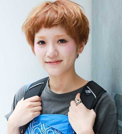 修剪较短的刘海,呈现不规则的弧度,显得少许的个性清爽感,养眼的浅棕色染发带来了最新的时尚趋势,一款既是俏皮又个性的蘑菇头发型你喜欢吗?
