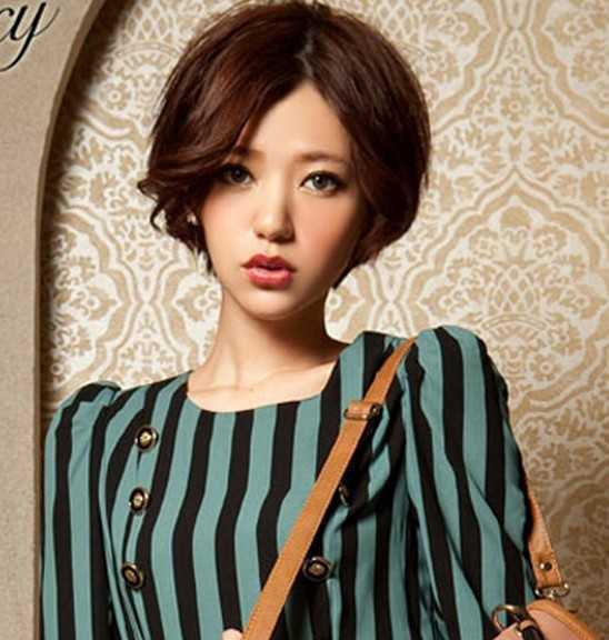 颇有帅气的女生短发发型,有着日系风格的修剪设计,线条不一的中分刘海却以烫卷的造型,有型个性的魅力瞬间飙升看,精美的红唇妆容,充满了知性范儿!
