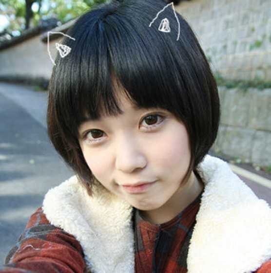 显得半圆顺滑的短发造型,贴服的两侧发髻却能起到很好的瘦脸效果,齐刘海的打造下,凸显大眼睛外,那可爱甜美减龄通通不是问题哦!