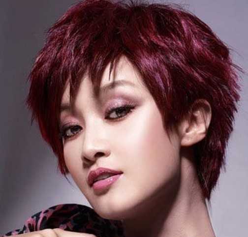 超个性炫酷的蘑菇头发型,短短发束的层次修剪下,更是时尚潮流起来,粉嫩的妆容,再染上一个靓丽的酒红发色,一副十足的自信气场。