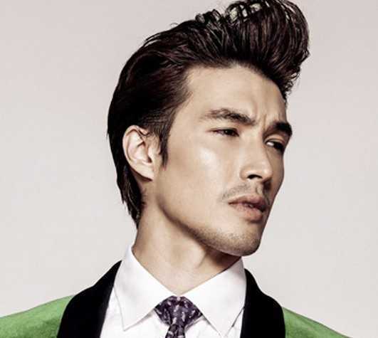 相似大背头的短发飞机头造型,霸气往上弄起的头发,融入时尚的湿发效果,西装领带正装现身,成熟魅力逼人。