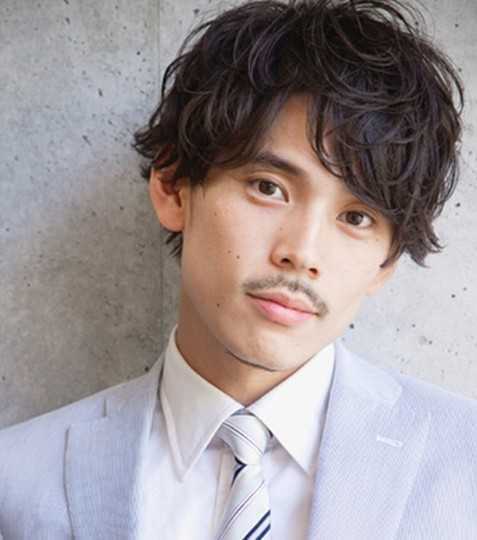 充满着文艺范的日系短卷发,蓬松的卷发造型,起到了很好的修饰头型效果,搭配西装衬衫,一副气质帅气的商务男士魅力。