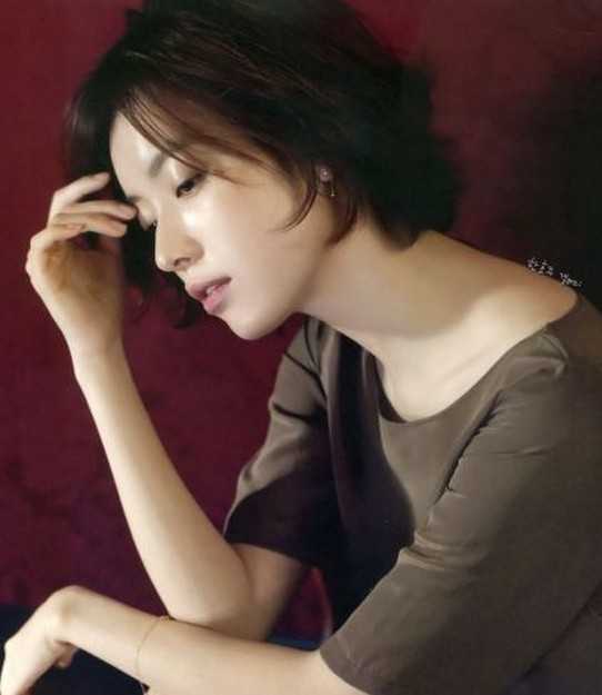侧面展示出来的几分忧郁眼神韩孝珠,配合上一款微卷翘的短发发型,凌乱的发丝间充分体现出优雅和迷离的感觉。