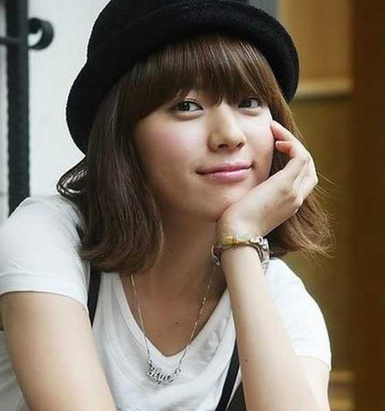 微微蓬松造型的短发,萌感的齐刘海设计,搭配上甜美简单的帽子造型,把韩孝珠尽情演绎出青春大方的感觉,可爱哦!