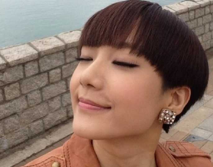 这是王君馨蘑菇头短发发型图片,整齐的圆弧度修剪下,完美打造出饱满的头型,黑色的发色虽然那么时尚抢眼,但是却能够既修饰脸型,还能带来甜美可爱的魅力。