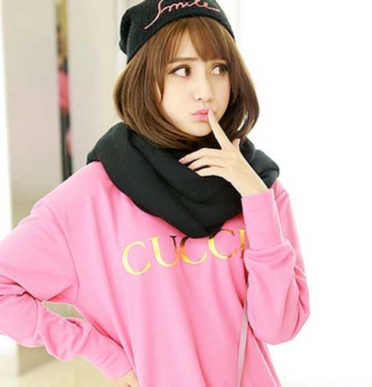 一身温暖的穿衣装扮,再配上一款韩系的萝莉短发发型,俏皮又不失可爱的小女生感觉,搭配黑色小帽子,个性又是潮流的体现。