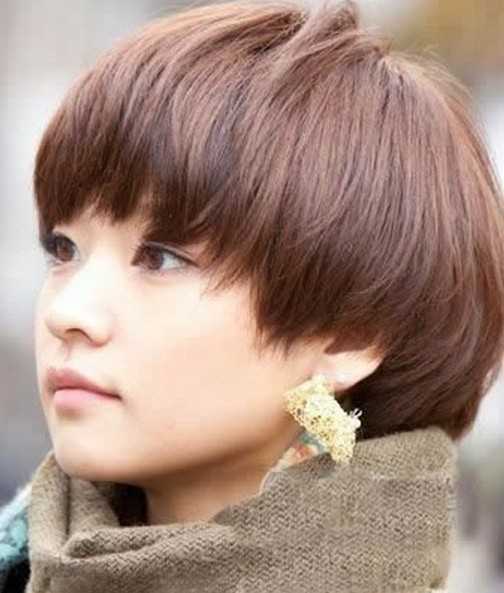 蘑菇头设计的短发发型,不规则的发髻修剪,给人少许可爱动感,凌乱的发丝,棕黄的染发颜色,时尚又自然百搭!