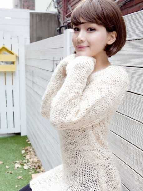 十分乖巧动人的女生,短发的造型上结合上卷翘的法术,微微斜分的刘海,这样看来有着超温婉的女人魅力。