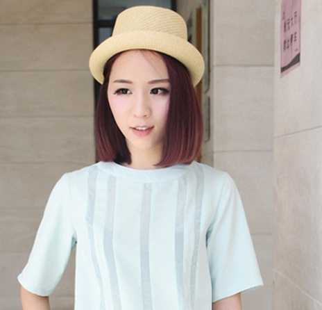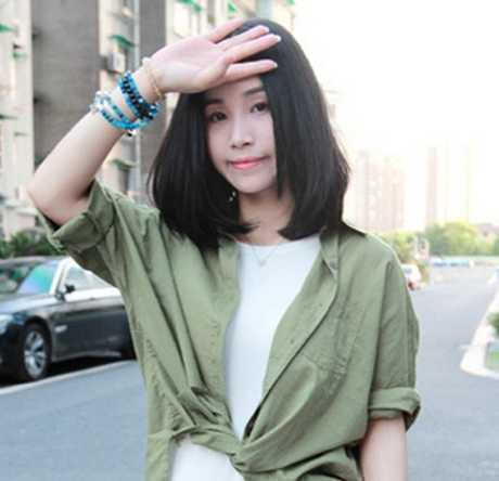 发型点评:简单又不失时尚的中分刘海短发,两颊内扣的发尾制造出来的蓬松感增添了发型的饱满,内扣的打造,更是凸显出精致小脸,清爽显气质。