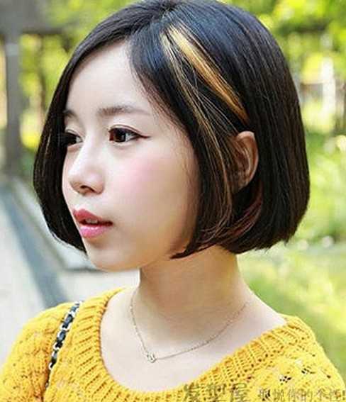 厚感的韩系短发发型,几束棕黄挑染发的搭配后,让女学生变得潮流气质起来了,中分微微搭耳后的发束,给人斯文气质感。