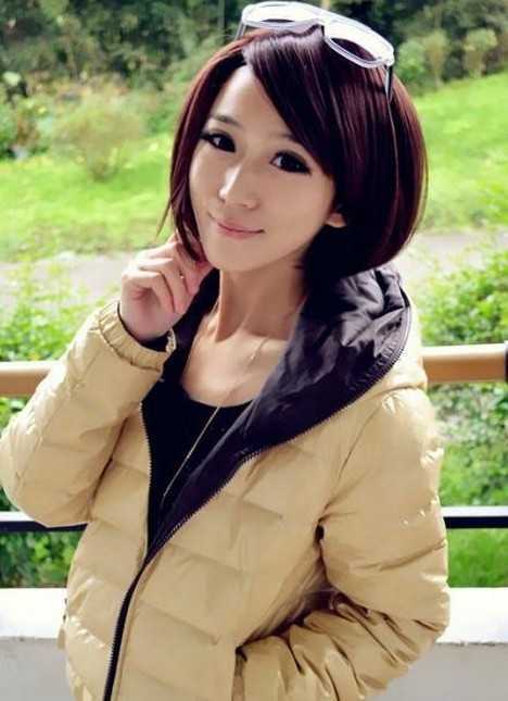 甜美与小帅气并存的一款短发发型,棕红的内扣短发,有着很好的修饰效果,顶部装点上墨镜头饰,酷酷气质魅力。