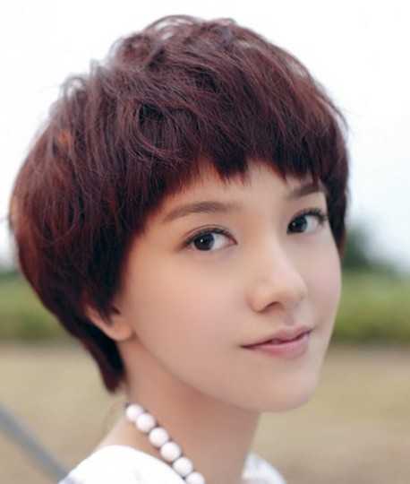十分清新甜美的锅盖头发型,顶部采用纹理烫发的设计,让单一的短发瞬间变得气质时尚感,搭配棕红染发,倍增几分美感和好看。