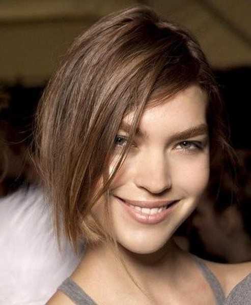 深棕色的短发造型,三七分刘海设计,柔化了欧美女生整个脸部的线条,再来个魅力的笑容,整体造型既时尚又有温柔女人味哦。