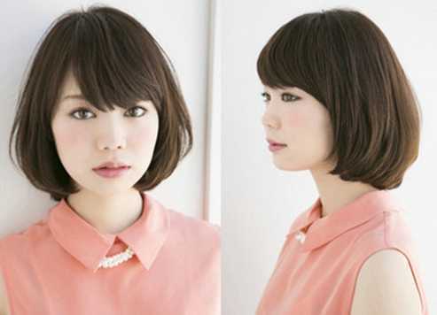 最显知性、气质的波波头中短发,内扣的波波头,瘦脸效果超赞,浅棕发色,很很凸显妹子白皙肌肤。2014年春夏流行。