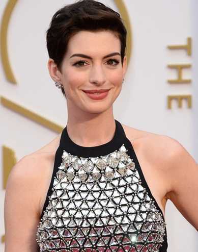安妮.海瑟薇这款充满知性、优雅的短发造型,超短露耳短发,清爽十足,头顶处制造出来的蓬松感看起来特别有造型的。