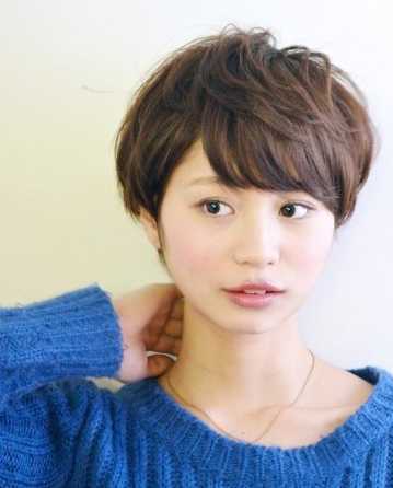 超短的短发发型,在夏季里就是倍添清爽气息,厚重的刘海会让脸蛋变得更加小巧,有点乖巧味道。