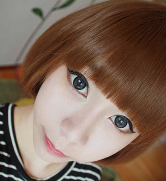 萌萌的萝莉大眼妹子,顺滑而直下的短发发型,乖巧又显得小甜美可爱感,搭配时尚的深棕发色,显白皙肌肤更具时尚。