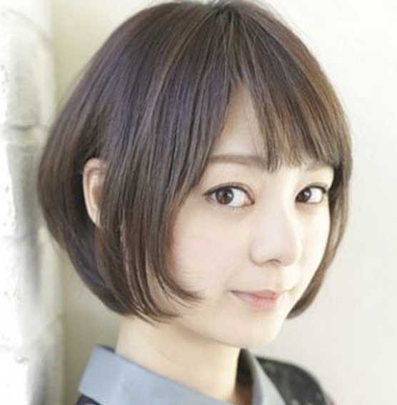 韩式的一款短发发型,大侧分的卷翘刘海很好修饰了女生的脸型,齐尾修剪的发梢结合烫发,看起来知性又时尚,夏季女生首选发型哦。
