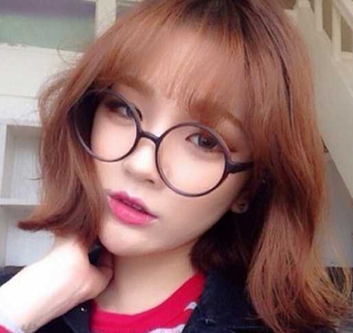 轻薄的齐刘海乖巧的搭在额头上,加上蓬松的短发烫发完美塑造娇小脸蛋,修颜效果十分显著,精致的妆容搭配圆型眼镜,复古而小清新范!