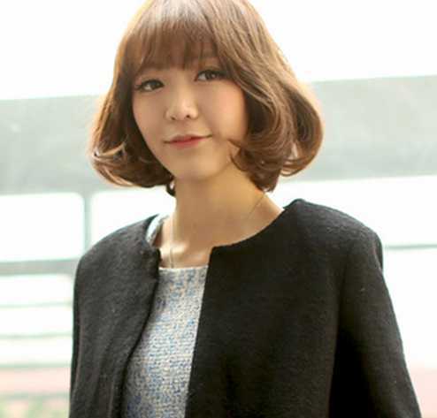 一款蓬松内扣式的短发发,起到了修颜和减龄的效果,搭配轻薄的齐刘海,时尚显韩系的小温婉气息呢!