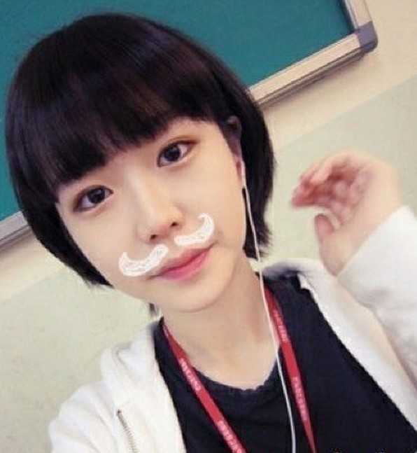 可爱俏皮范短发发型,有点不规则的齐刘海设计可爱减龄十足,勾在耳后的头发,显得脸型更加的小,蜕变巴掌小脸。