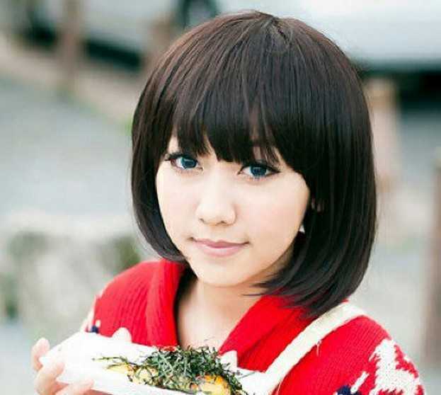 短的的头发造型出内扣式的头发设计,瞬间包裹出一张精致小脸型,齐刘海的头发,修颜又具可爱和减龄,整体看起来显清新甜美范!