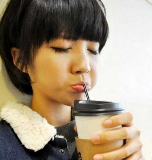 乌黑发色的短短发型,萌萌的碎发的齐刘海设计,看起来纯真又显可爱,搞怪的女生表情,俏皮精灵的呀!